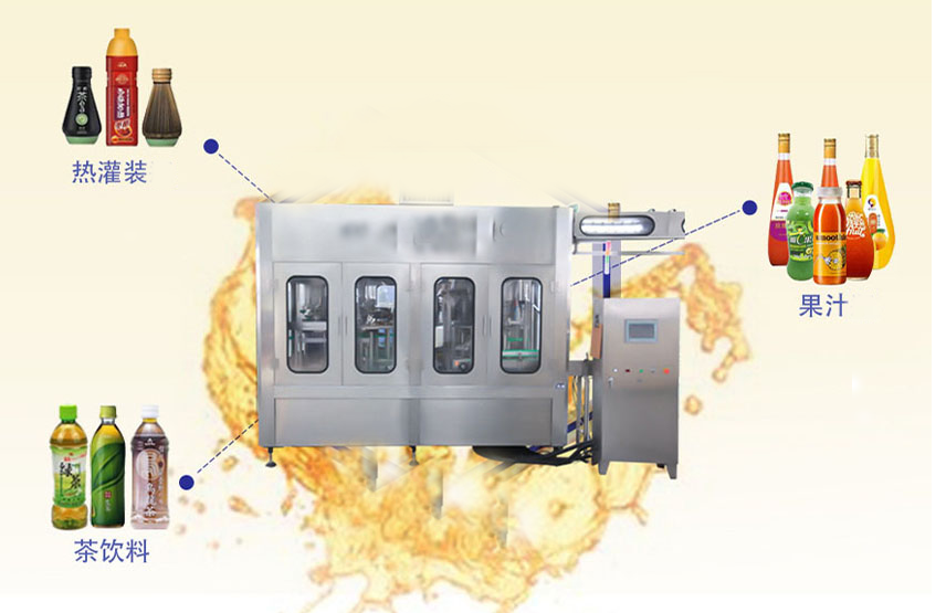 ? ? ? ?果汁灌裝機適用于果汁、茶飲料、功能飲料及果味奶飲料的灌裝。在溫度控制器的幫助下,該機器能夠進行80-95度高溫?zé)峁嘌b。本設(shè)備采用瓶頸懸掛技術(shù),適用于各種瓶型,更換瓶型只需調(diào)節(jié)傳送鏈的高度即可,方便快捷。全機PLC控制變頻調(diào)速,自動化程度高,自動控制進液,液位控制準(zhǔn)確,無滴漏。與物料接觸部分均為食品級304優(yōu)質(zhì)不銹鋼。是飲料廠家的優(yōu)選產(chǎn)品。